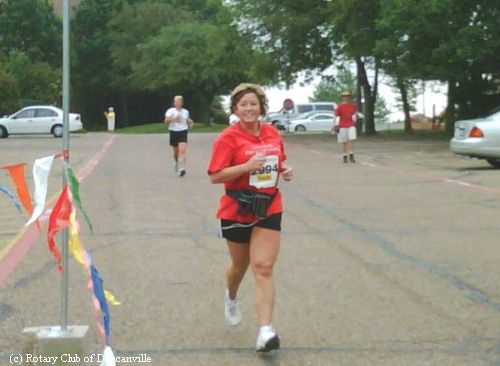 Duncanville Rotary Club members and Interactors were a big part of the Orville Rogers' RUN FOR THE HILLS 5K Run/1.5 Mile Walk that took place on Saturday, May 2nd. John Davis served as the first RUN director and continues to participate each year. Among this year's sponsors was Rotarian Jack Bryan. Pictured: Dr. Natalie Nickerson crossing the finish line!